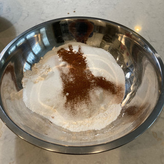 2. Combine all of the dry ingredients in a bowl. If you want to, add the nuts. I chose to use pecans. Set the dry ingredients mixture aside.
