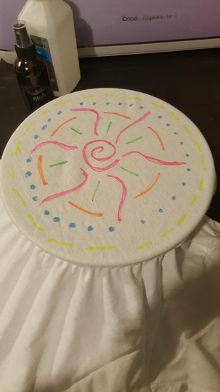 Step 1: Stretch one side of the material of the open expanse of your chosen round object, then secure it there by stretching a rubber band over the material covered object.